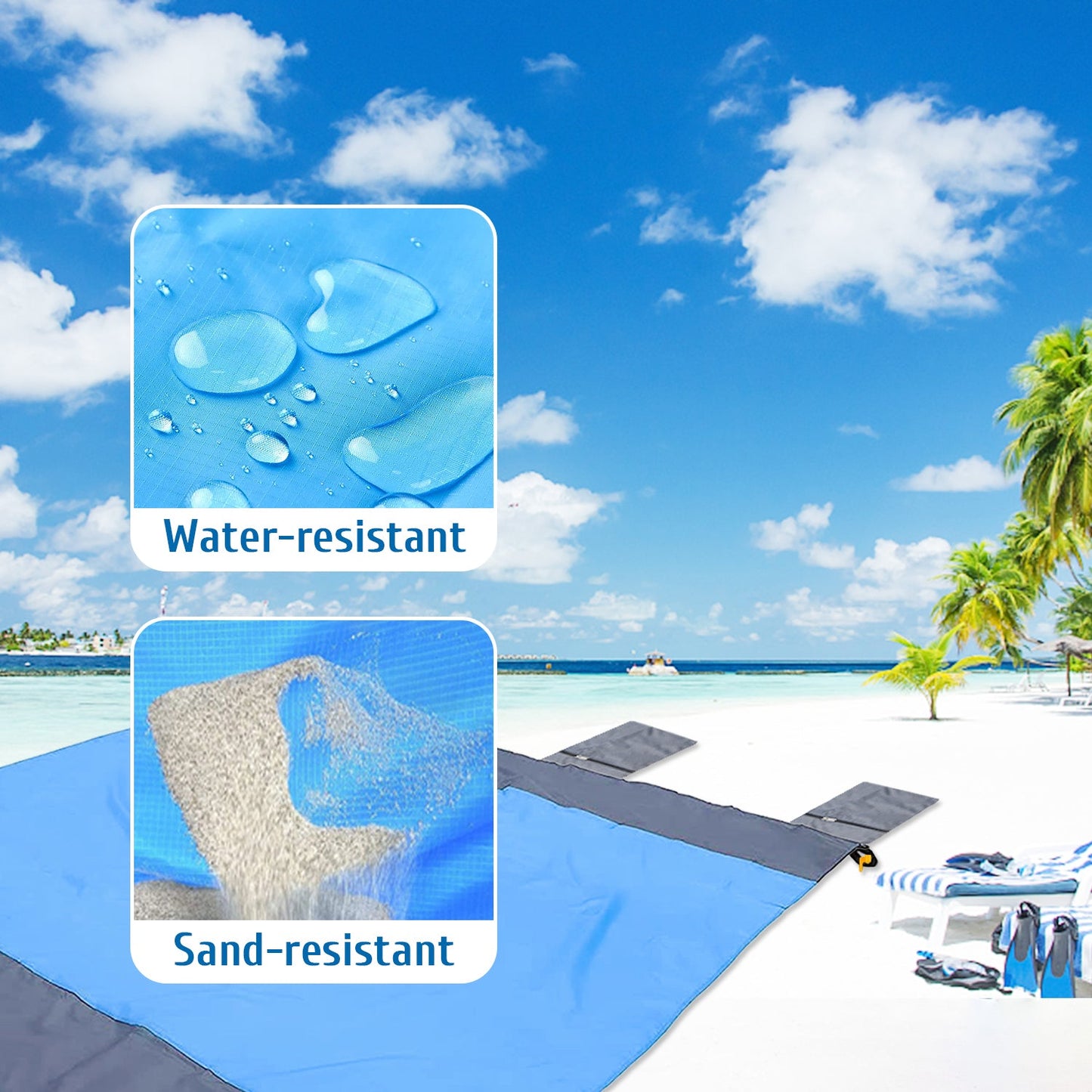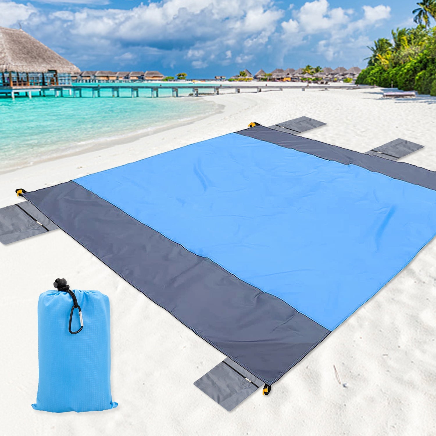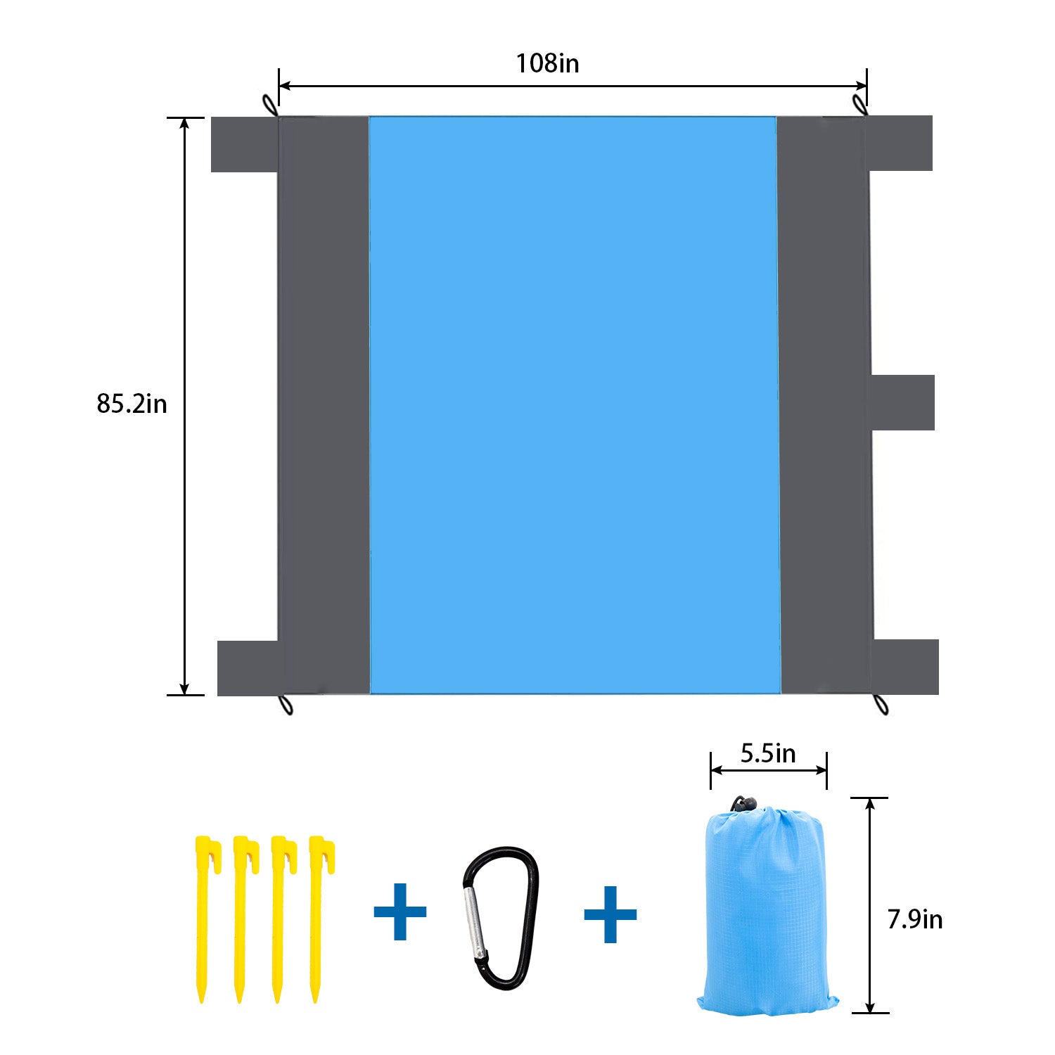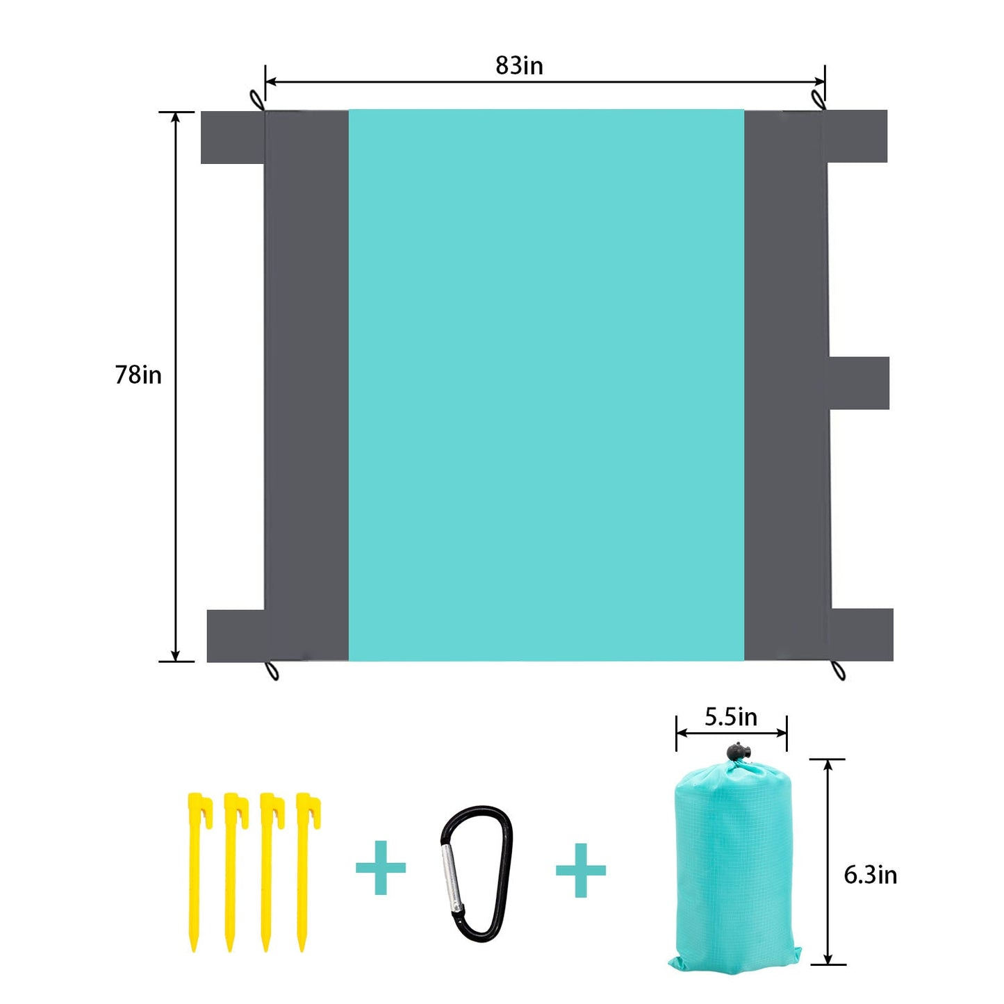 Descriptions: Astarin Beach Blanket, Beach Blanket Waterproof Sandproof, Extra Large Sandproof Beach Blanket, Waterproof Picnic Blanket with 4 Stakes, Beach Accessories for Travel, Camping, Hiking Note: Manual measurement has been used, there may be some reasonable error. Items may slightly differ from photos in terms of color due to the lighting or your monitor's display. *- SAND-RESISTANT, WATER-RESISTANT & DRY-QUICK: The beach blanket is made of Polyester which is strong, durable, lightweight, and 100% breathable. NO WORRY about the sand sticking to the beach blanket and easy to get off the sand and brush off. The picnic blanket also dries quickly so you don't need to wait around for it to dry. Get it as your beach accessories. *- DOUBLE WIND-RESISTANT DESIGN: The sandproof waterproof beach blanket with 5 integrated sand anchor pockets and 4 ground stakes, provides dual wind-resistant protection to keep the blanket on the ground even in high winds. The pockets are with built-in zipper which can keep your valuables safe. Ideal beach accessories. *- LARGE, COMPACT & LIGHTWEIGHT: The sandproof beach blanket is 83" X 78" to fit a couple or 1-3 persons. And it folds to a compact size (6.3 × 5.5 in) that fits in a pouch to make a great, lightweight carry along. With a Waterproof Sandproof Beach Blanket, you can solve the not easy-to-carry problem, perfecting your beach vacation. *- ENJOY YOUR BEACH FAMILY DAY: Ultra-compact sandproof beach blanket designed with portability in mind is the perfect groundsheet for all occasions. Whether yoga lovers enjoy exercise alone on the beach, couples take a romantic vacation or a family goes for a funny picnic, this outdoor blanket will be your favorite companion. Just take it and go camping, hiking, picnics, music festivals, or any other outdoor activity. *- ACCESSORIES: Includes 4 stake anchors, a safety carabiner, and a carry bag. 4 stakes are for 4 loops in each corner of the beach mat. It's triple stitched for maximum strength and durability. Enjoy a summer beach vacation with more comfort and a lot less hassle.
