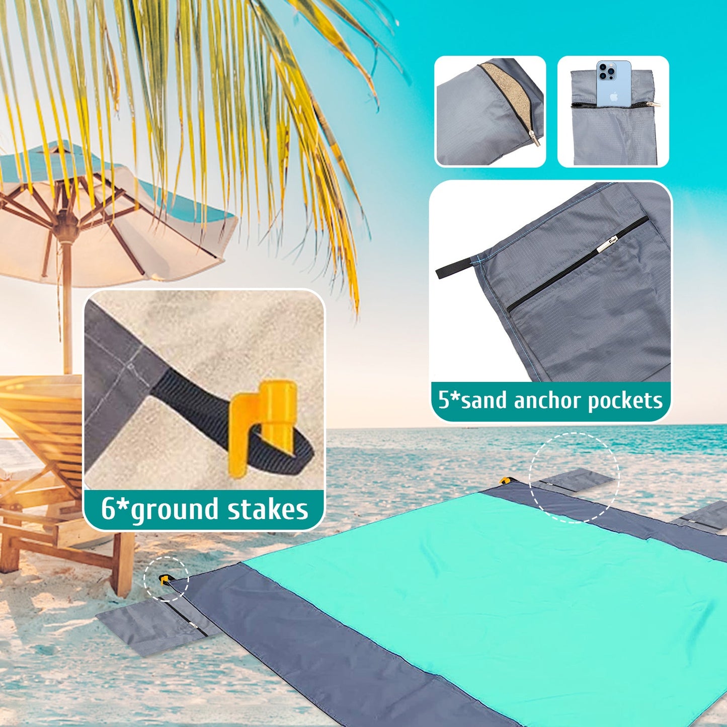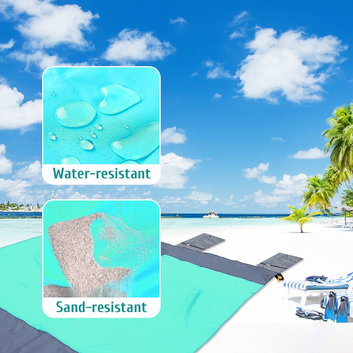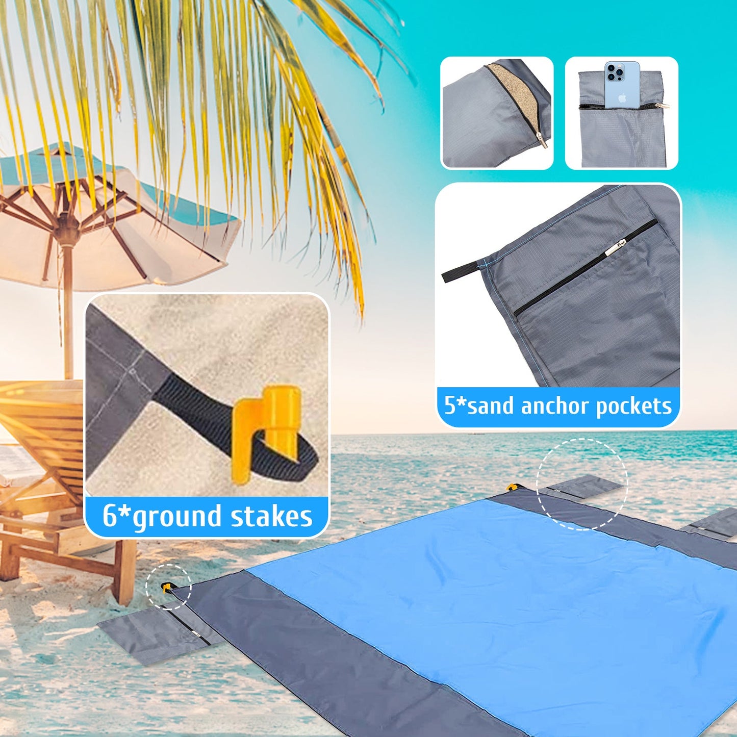 Descriptions: Astarin Beach Blanket, Beach Blanket Waterproof Sandproof, Extra Large Sandproof Beach Blanket, Waterproof Picnic Blanket with 4 Stakes, Beach Accessories for Travel, Camping, Hiking Note: Manual measurement has been used, there may be some reasonable error. Items may slightly differ from photos in terms of color due to the lighting or your monitor's display. *- SAND-RESISTANT, WATER-RESISTANT & DRY-QUICK: The beach blanket is made of Polyester which is strong, durable, lightweight, and 100% breathable. NO WORRY about the sand sticking to the beach blanket and easy to get off the sand and brush off. The picnic blanket also dries quickly so you don't need to wait around for it to dry. Get it as your beach accessories. *- DOUBLE WIND-RESISTANT DESIGN: The sandproof waterproof beach blanket with 5 integrated sand anchor pockets and 4 ground stakes, provides dual wind-resistant protection to keep the blanket on the ground even in high winds. The pockets are with built-in zipper which can keep your valuables safe. Ideal beach accessories. *- LARGE, COMPACT & LIGHTWEIGHT: The sandproof beach blanket is 83" X 78" to fit a couple or 1-3 persons. And it folds to a compact size (6.3 × 5.5 in) that fits in a pouch to make a great, lightweight carry along. With a Waterproof Sandproof Beach Blanket, you can solve the not easy-to-carry problem, perfecting your beach vacation. *- ENJOY YOUR BEACH FAMILY DAY: Ultra-compact sandproof beach blanket designed with portability in mind is the perfect groundsheet for all occasions. Whether yoga lovers enjoy exercise alone on the beach, couples take a romantic vacation or a family goes for a funny picnic, this outdoor blanket will be your favorite companion. Just take it and go camping, hiking, picnics, music festivals, or any other outdoor activity. *- ACCESSORIES: Includes 4 stake anchors, a safety carabiner, and a carry bag. 4 stakes are for 4 loops in each corner of the beach mat. It's triple stitched for maximum strength and durability. Enjoy a summer beach vacation with more comfort and a lot less hassle.
