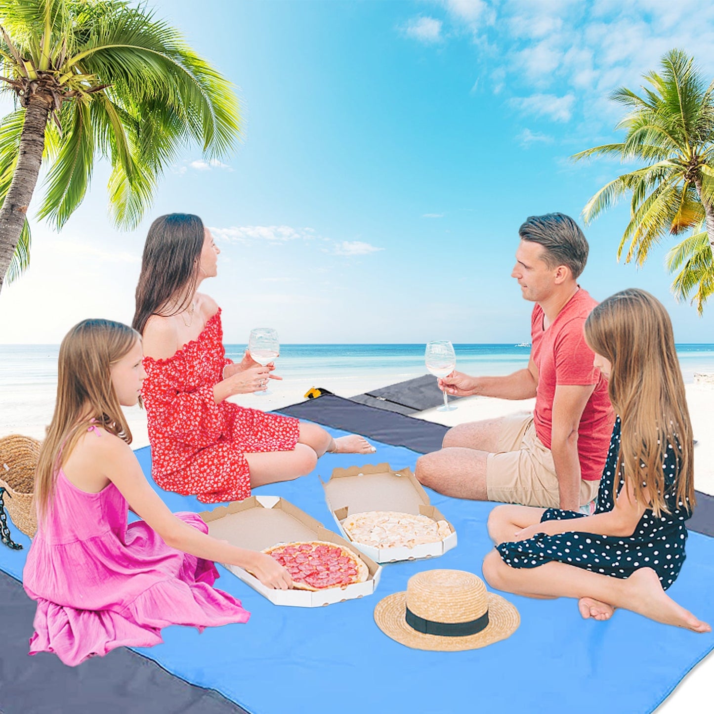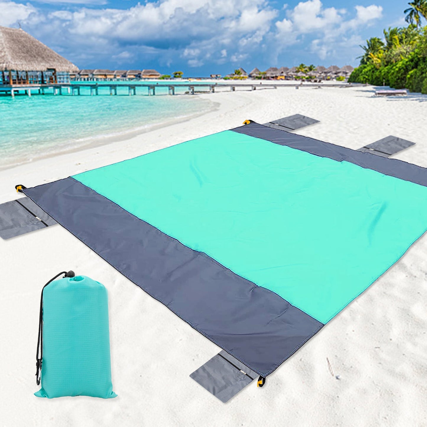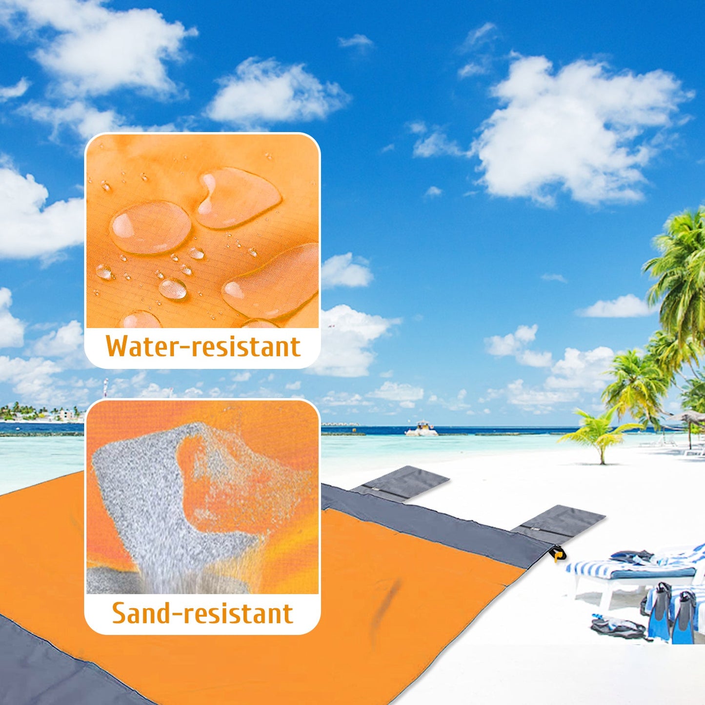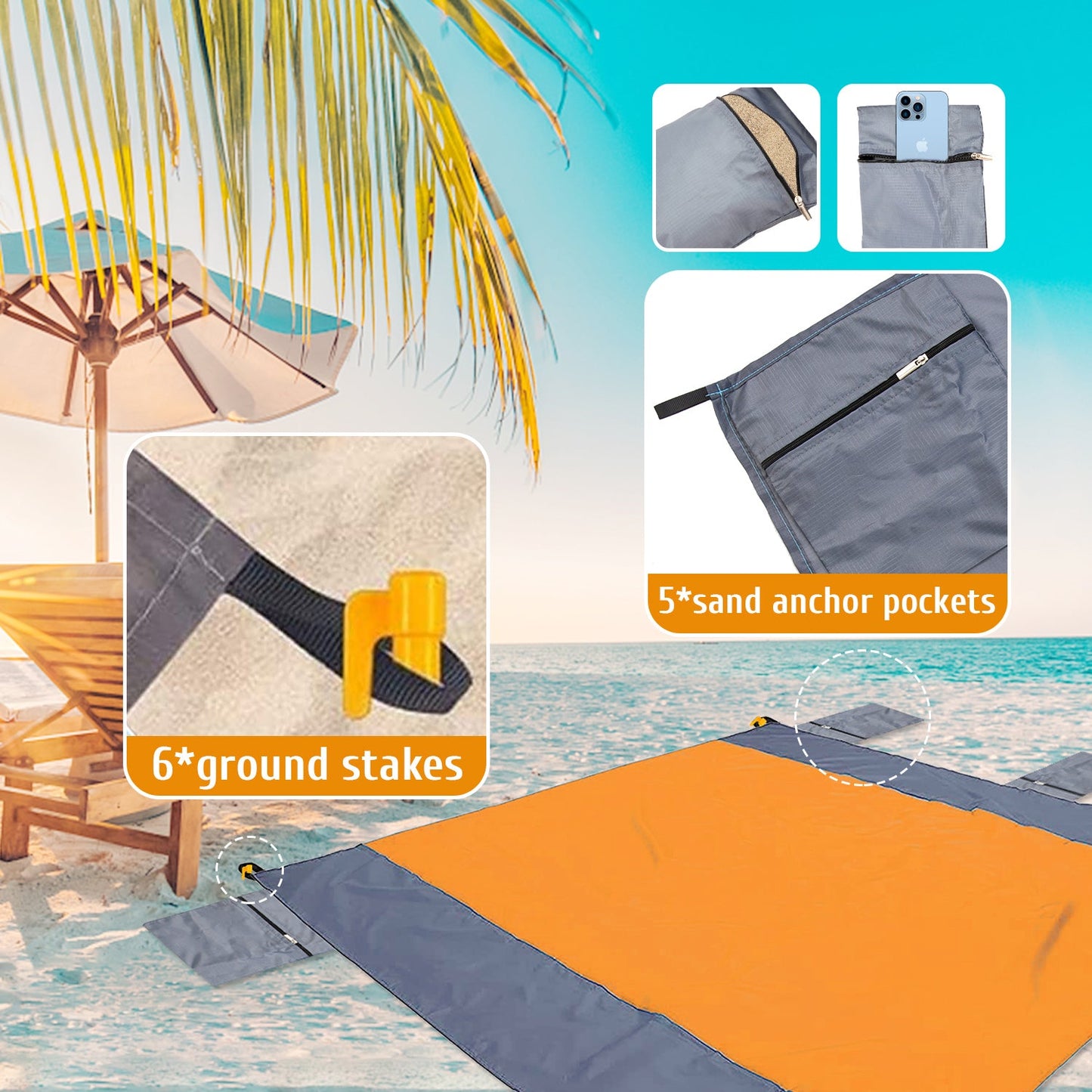 Descriptions: Astarin Beach Blanket, Beach Blanket Waterproof Sandproof, Extra Large Sandproof Beach Blanket, Waterproof Picnic Blanket with 4 Stakes, Beach Accessories for Travel, Camping, Hiking Note: Manual measurement has been used, there may be some reasonable error. Items may slightly differ from photos in terms of color due to the lighting or your monitor's display. *- SAND-RESISTANT, WATER-RESISTANT & DRY-QUICK: The beach blanket is made of Polyester which is strong, durable, lightweight, and 100% breathable. NO WORRY about the sand sticking to the beach blanket and easy to get off the sand and brush off. The picnic blanket also dries quickly so you don't need to wait around for it to dry. Get it as your beach accessories. *- DOUBLE WIND-RESISTANT DESIGN: The sandproof waterproof beach blanket with 5 integrated sand anchor pockets and 4 ground stakes, provides dual wind-resistant protection to keep the blanket on the ground even in high winds. The pockets are with built-in zipper which can keep your valuables safe. Ideal beach accessories. *- LARGE, COMPACT & LIGHTWEIGHT: The sandproof beach blanket is 83" X 78" to fit a couple or 1-3 persons. And it folds to a compact size (6.3 × 5.5 in) that fits in a pouch to make a great, lightweight carry along. With a Waterproof Sandproof Beach Blanket, you can solve the not easy-to-carry problem, perfecting your beach vacation. *- ENJOY YOUR BEACH FAMILY DAY: Ultra-compact sandproof beach blanket designed with portability in mind is the perfect groundsheet for all occasions. Whether yoga lovers enjoy exercise alone on the beach, couples take a romantic vacation or a family goes for a funny picnic, this outdoor blanket will be your favorite companion. Just take it and go camping, hiking, picnics, music festivals, or any other outdoor activity. *- ACCESSORIES: Includes 4 stake anchors, a safety carabiner, and a carry bag. 4 stakes are for 4 loops in each corner of the beach mat. It's triple stitched for maximum strength and durability. Enjoy a summer beach vacation with more comfort and a lot less hassle.
