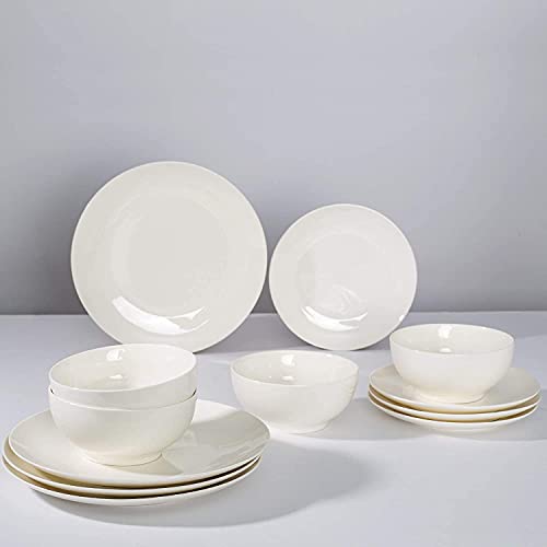 - PREMIUM QUALITY: Our 12 -pcs dinnerware set is premium glass porcelain. Each piece is fired at high temperatures to maximize the strength of the porcelain, making it more durable and resistant to cracks, stains, or scratches.