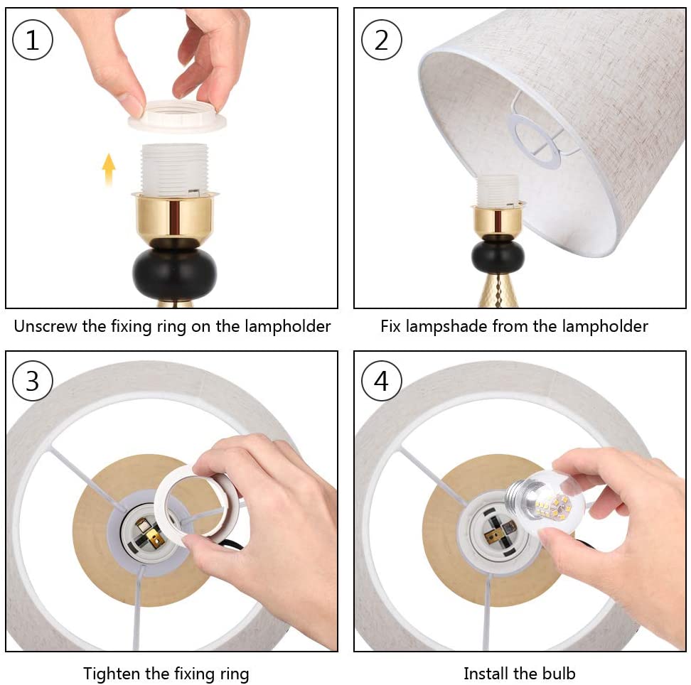 The elegant bedside lamps are great to match different styles of household perfectly. It has the ability to display its retro look everywhere you put it. The linen fabric shade stands out with the metal contrast, making it a simple yet elegant light. Good fabric lampshade softens the light and protect you eyes. The lamps set of 2 with pretty look and multi purpose, will be as nice home decorations or gifts for thanksgiving, New Year, weddings, parties or other special events! Vintage Table Lamps, Set of 2, Modern Lamps with Metal Frame Fabric Shade, Gold *- PERFECT SIZE: Lamp dimension is 16.6 x 6.0 x 5.5 inches, the unique base allows for the lamp to fit on tables of any size. These lamps are design of compact and saving-space, it’s perfect in living room, bedroom, girls room, den, college dorm, bar, hotel, etc. (Please be clear about the size when you browse) *- GENEROUS DESIGN: Based on modern style, these nightstand lamps are designed especially the unique golden frame that gives elegant and charming. With a metal base and linen fabric shade promotes a beautiful and minimalist contrast. It’s a perfect décor in a beautiful modern house for creating peaceful atmosphere and comfortable lighting! *- BULB REQUIREMENTS: The Haitral bedside lamps set of 2 can be only equipped with standard E26 light bulbs, Max 60 watts. They’re compatible with a variety of incandescent, halogen, LED or CFL light bulbs. Its fabric shade softens the light that provides a flicker-free lighting for reading, studying or working. (Bulb isn’t included in the package) *- SAFE & EASY TO USE: The cord, socket and plug of set of 2 nightstand lamps are UL listed. An ON/OFF button on the power cord is easy to turn on off. They are lightweight lamps, easy to move to any place where you have lighting needs and easy to assemble. Very nice minimalist light for the right price! *- Specification: Shade Color: Linen Input Voltage: 110V Power Cord Length: 67 Inches Material: Metal Body, Fabric Shade, Metal Base Lamp Size: 16.6 x 6.0 x 5.5 Inches Bulb Base: E26 (Bulb not included), Max 60 Watts Package Content: 2 x Industrial Table Lamp (Bulb not included)