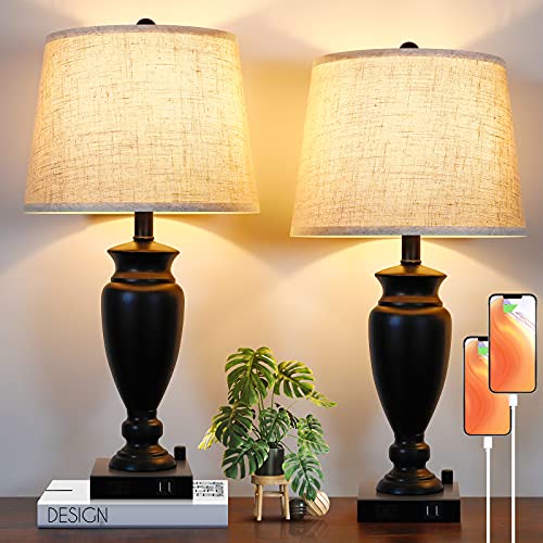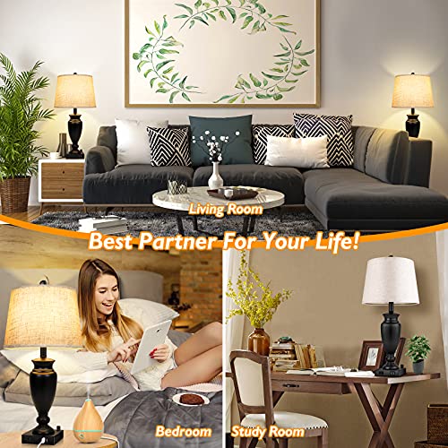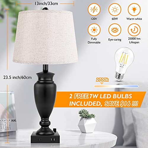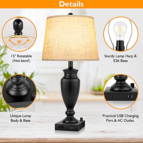 - 【Superior Material & Easy Installation 】Unlike other cheap iron bases, The base of our usb bedroom lamps are made of premium metal, which is coated with matte black finish. Moreover, with the cream-colored upscale linen, it can also add a classic and modern feel to your bedroom. The end table lamp base is specially weighted and fitted with anti-slip mat to avoid wobbling, tipping over or slipping around. our living room lamp