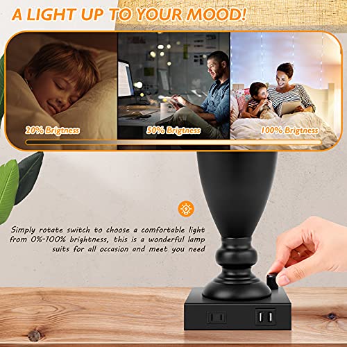 - 【Upgraded Stepless Dimming Bedside Lamp】Designed with a rotary switch on the base, this lamp with usb port and outlet can be adjusted to any desired brightness from 0%-100%, no matter you are working, reading or sleeping, just choose it to meet all your needs. Compared with other 3-way dimmable table lamp, the fully dimmable bedside lamp is more stable, not flicker, and easier to adjust the brightness to your satisfaction.