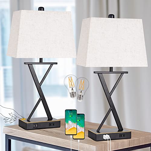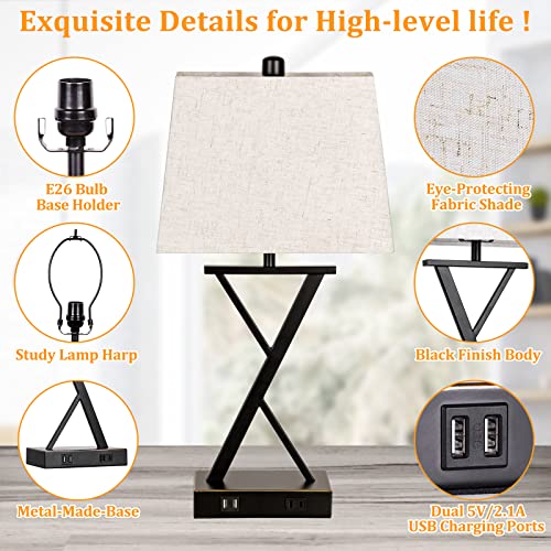 - 【2 USB Ports and AC Outlet for Fast Charging】Equipped with 2 USB ports and AC outlet, our USB bedside lamps can charge up to 3 devices at the same time, such as phones, iPad, humidifier, mini fans, apple watch, etc,...And no matter the table lamps on or off, the charging function always working, which allows you to save the trouble to find plug all around, and can keep your nightstand always tidy without a mess of charging cables, clutter and cords