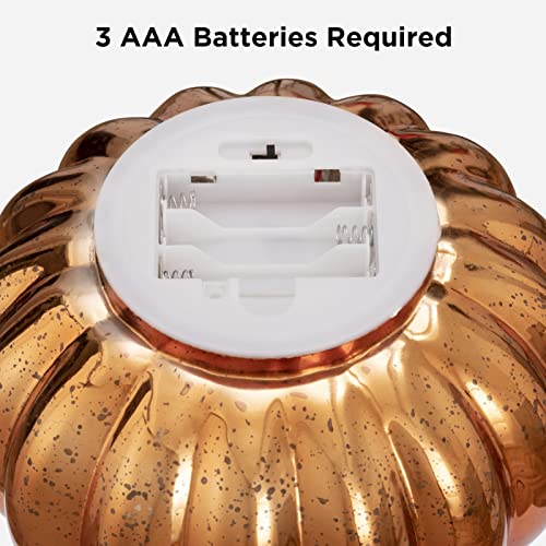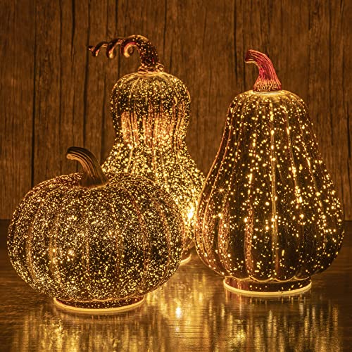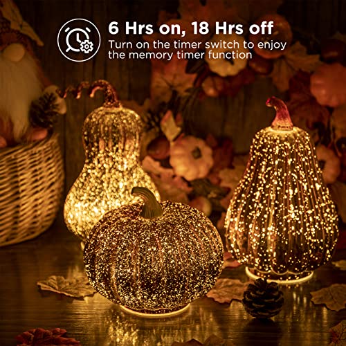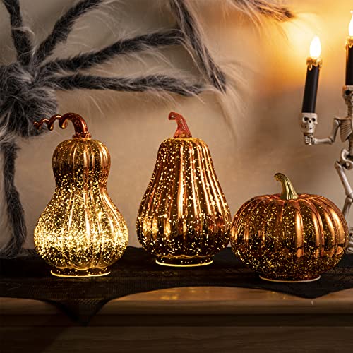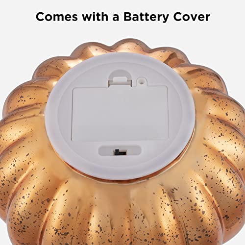 - DESIGN: Designed with premium glass material combined with gold speckled decor, when you light up the pumpkin LED light inside, it will emit a warm and romantic amber light that will make your home sweeter all fall.