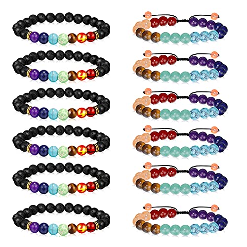 - 🎄MATERIAL - Each chakra bracelets are made of dozens of natural lava rock stone and 7 pcs chakra beads, sturdy and durable, not easy to break or fade. Lava stone in three colors: white, black and brown. Chakra beads are red agate, amber tiger eye, green king stone, amethyst, lapis lazuli and turquoise.
