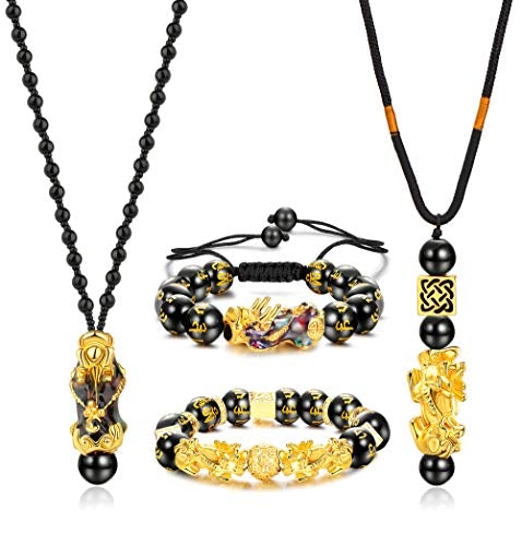 - Good Blessing Gift -- Since ancient times, pi xiu has been served as amulets and prayers for safe wealth, it can relieving stress, fatigue and driving away bad luck. Pixiu feng shui black obsidian wealth bracelet necklace set come with a velvet bag. Perfect gift for your families and friends, suitable for valentine's day, christmas, thanksgiving, birthday, anniversary, graduation ceremony and other occasions.