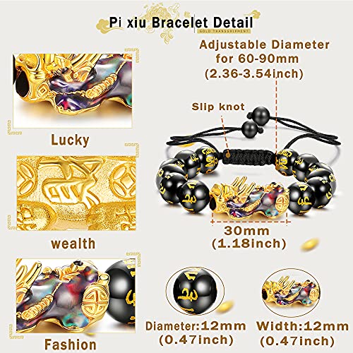 - Elegant design -- Natural stone bead possess low density, light weight and skin-friendly. Engraved with sanskrit on the surface, can absorb the negative energy around it and is the best protection for you. Its cool feeling of the black obsidian bead bracelet in hands can make the anxiety calm down. Wear feng shui bracelet with the head of the pi xiu facing outward, can bring you health, good luck and make you feel safer and happy. Now many enterprises, banks will put it on the conspicuous table.