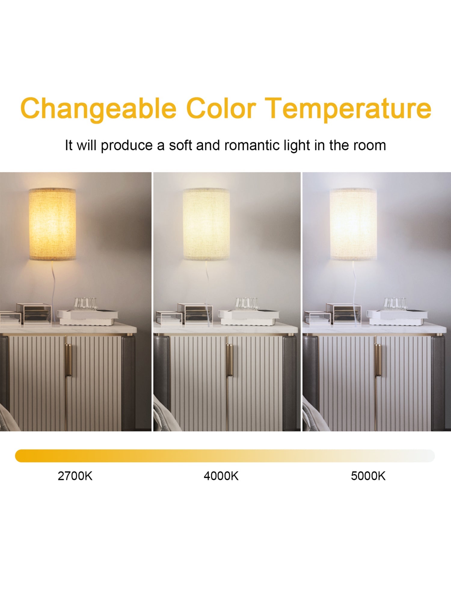 Set of Two Wall Sconces, 3 Color Temperatures, Wall lamp w/ Cord