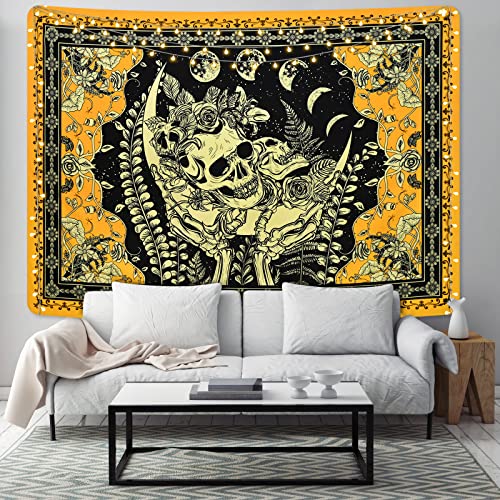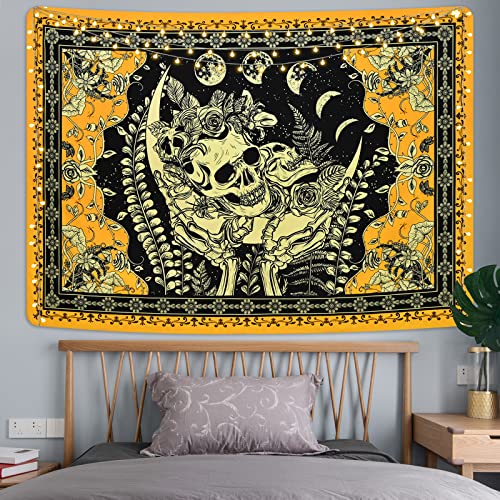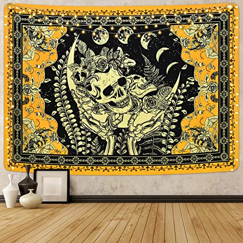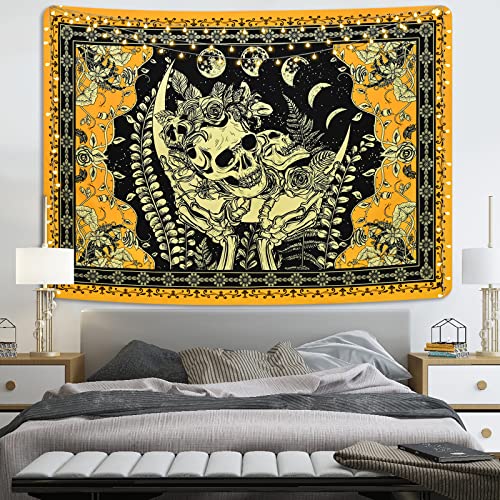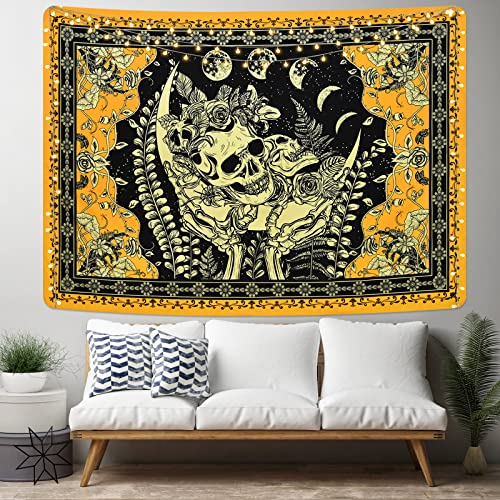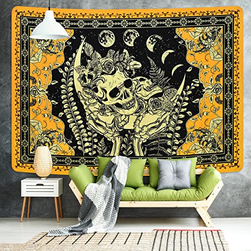 Skull Floral Skeleton Tapestry Tarot Moon Phase Wall Decor