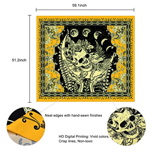 - AMAZING DESIGN: This skull tarot tapestry use HD printing technology print skull, moon phase, starry sky, flowers and butterfly pattern, feature vivid colors and crisp lines, which is super cool, very popular among teenagers, adults and punk lovers.
