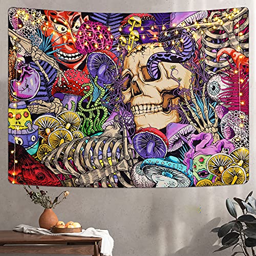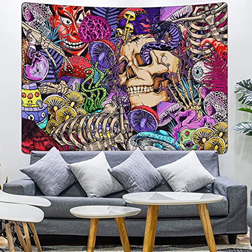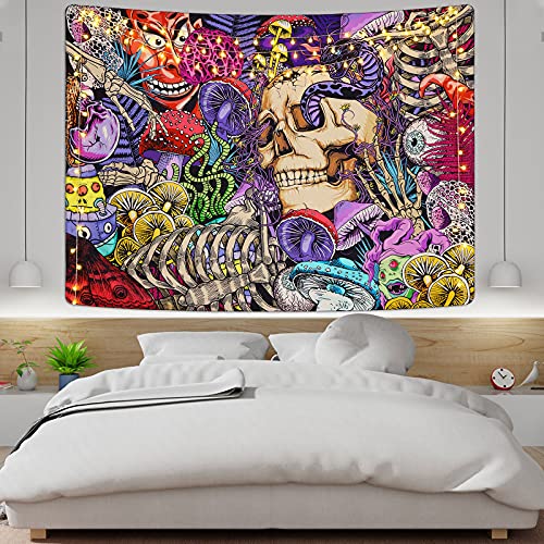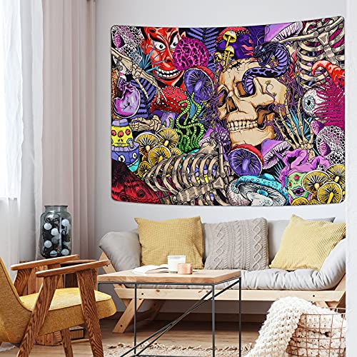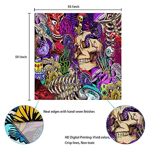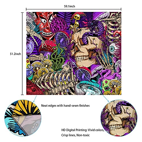 Skull Tapestry Trippy Mushroom Psychedelic Aesthetic Tapestry
