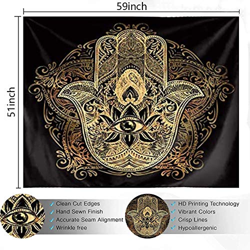 - 【FEATURES】Tapestry Aesthetic with thick fabric, firm and wear-resistant, good wrinkle resistance, strong heat resistance, exquisite printing process, personalized DIY printing design, customized personal matching.This bohemian tapestry is a creation of design. The black gold Trippy hamsa hand pattern design is a great way to add color to your bed, ceiling, and wall.Gentle Hand Wash Separately In Cold Water, Dry In Shade only; Machine Wash In Cold Water, Gentle Cycle.