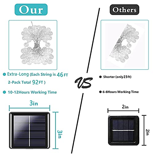 - 【Super-Long 8-in-1 Globe Solar Fairy Lights on Clear Wire】: Much More Crystal Globe ( 2-Pack Total 160 Larger Size Crystal Globe ), Extra-Long ( Each string lights is 46FT, Total 92FT ), Unique 8 Lighting Modes & Memory Function & Auto On/Off, Larger Capacity Built-in Battery, IP65 Waterproof Performance.