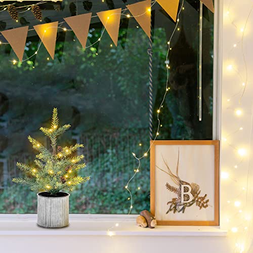- 【Rustic Style】It features rustic style with snowy tips and pinecones, pre-lit with 30 LED warm white lights, adds more Christmas touches. Turning on the lights with 2 AA batteries (not included).