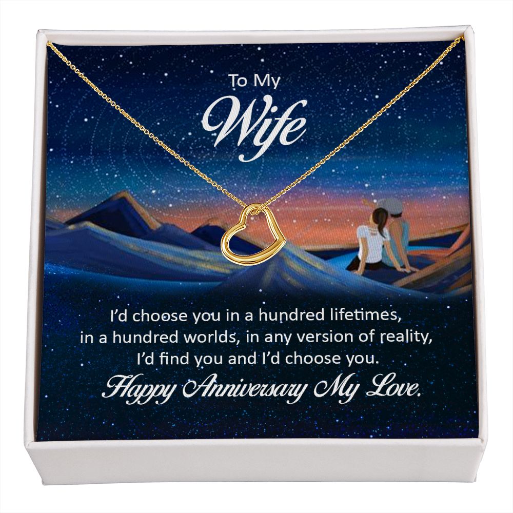 To My Wife Happy Anniversary My Love beautiful Delicate Heart Necklace