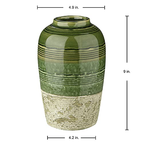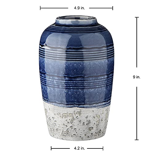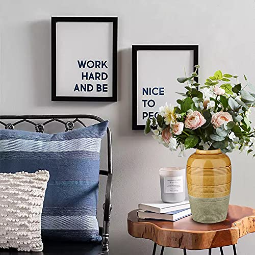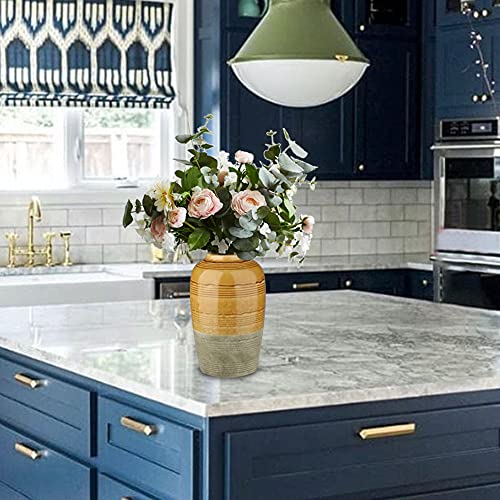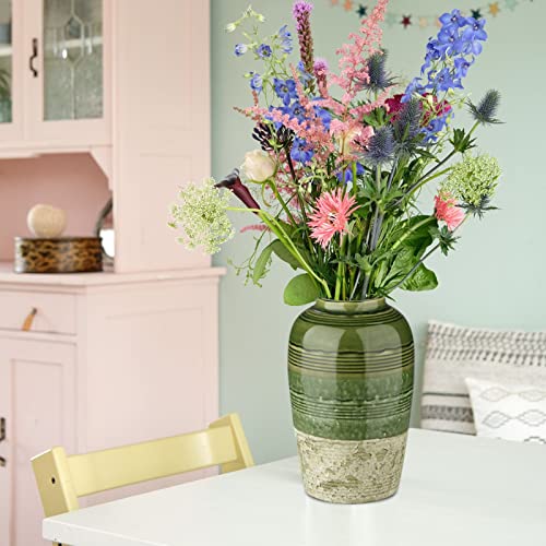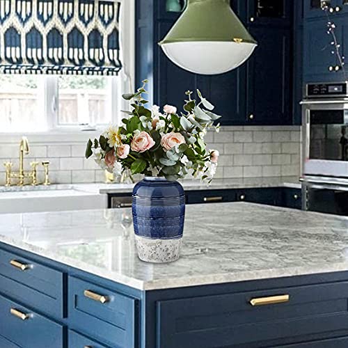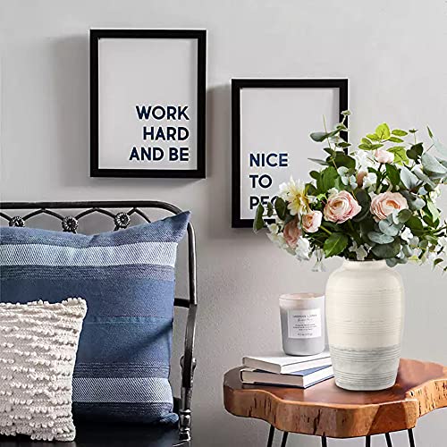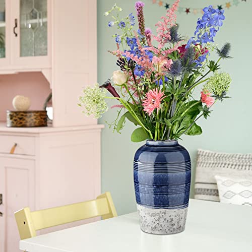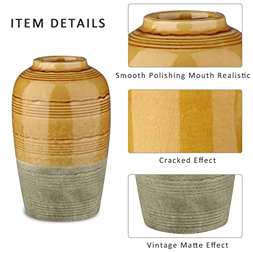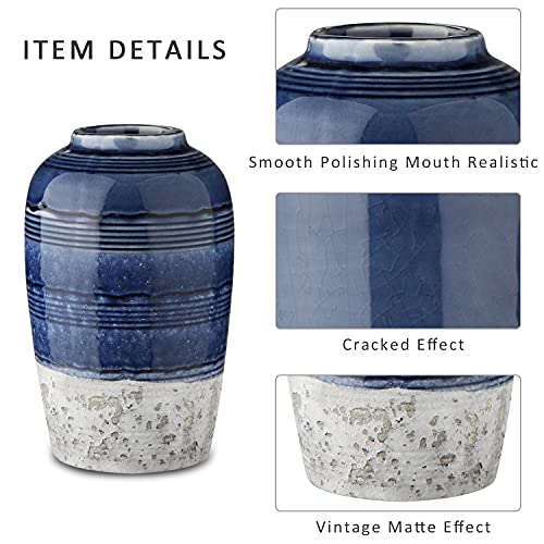 - 【CERAMIC FLOWER VASE】:Using superb glazing process and firing at high temperature, it has a cracked effect on the upper surface, the bottom is designed to have a distressed cement effect, which is unique and vintage.As the high temperature firing, the pattern of each pot will be slightly different