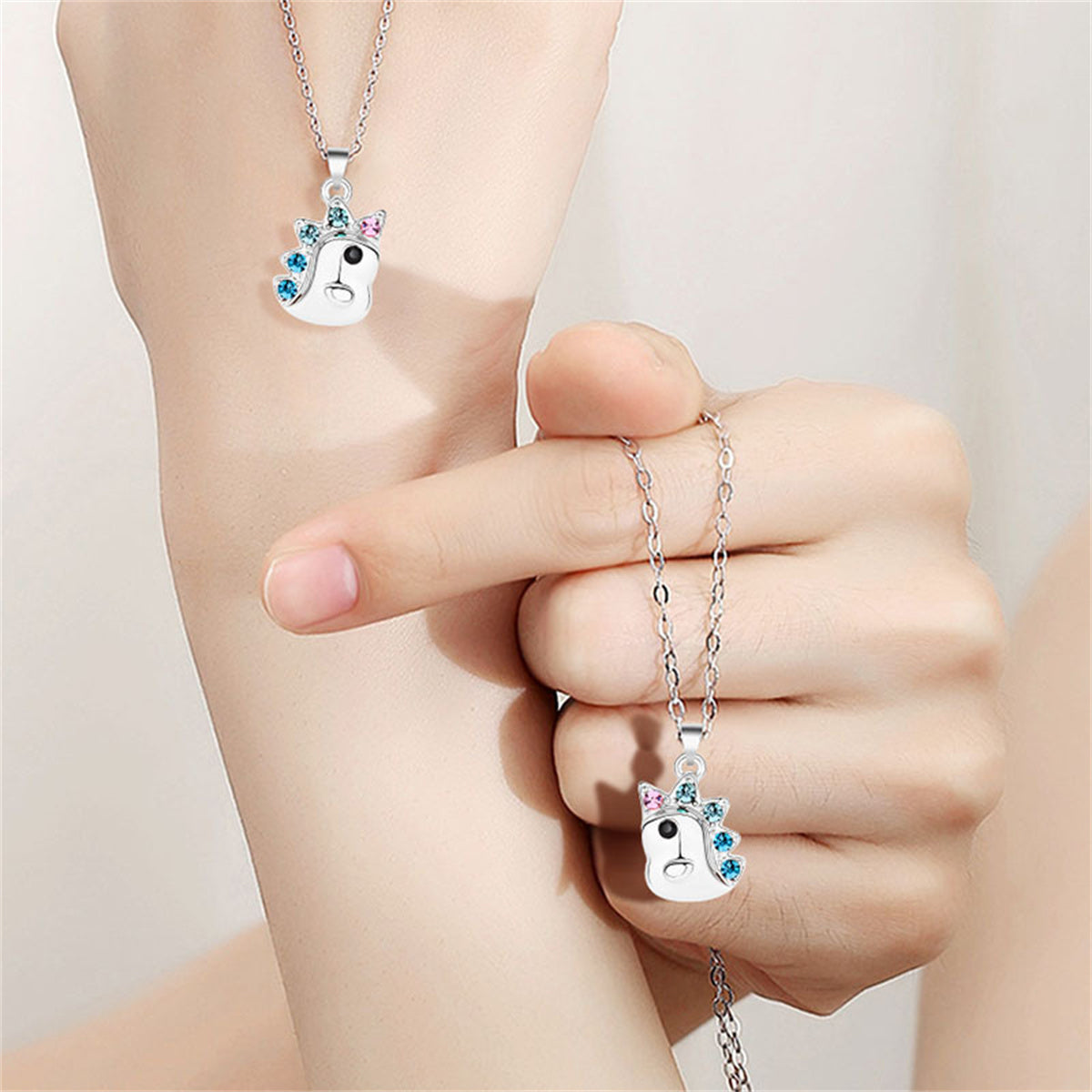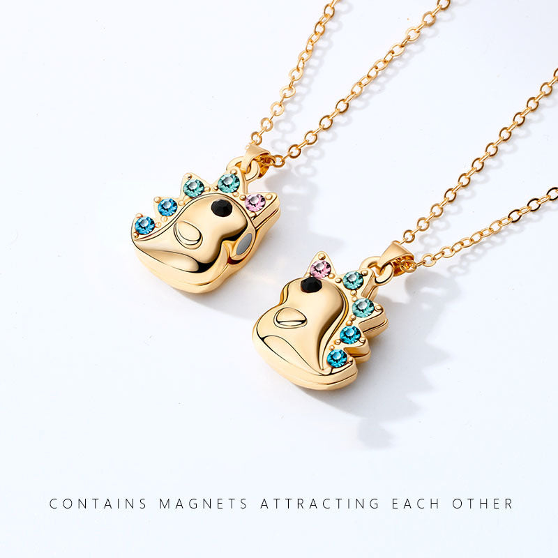 Best Gifts for special your Special Gifts for your wife on the Anniversary day. Romantic Gifts for girlfriend on Valentine's Day. Great Gifts for your mom on Mother's day. Ideal Gifts for your best friend on Birthday. Specific maintenance are as follows: 1.Jewelry often replaced, the same piece of jewelry, should avoid wearing long time,especially in hot summer,jewelry coating easy to corrosion when long-term contact sweat,so it is best to prepare several pieces as replacements. 2.Easy to damage when exposure with chemicals, bathed in the fragrance, chlorine in swimming, and the salt water of the sea,all will cause etch to jewelry plating, so should remove all before a bath or swim. 3.Don't overlap, collision chafed, should be stored in the original packaging or in the box of the independent small grid, avoid to scraping surface. *- Size: Length of the unicorn couple necklace is 18" + 2" extension chain,Figaro chain necklace for girls ,Unique fairy tale color, vivid cloisonne craft to make the necklace *- Material: The couple magnet necklace are made of high quality brass with 14K gold plated,color will last a long time without tarnish, nickel free, lead free, hypoallergenic *- Unique Design: Unicorn could keep you away from negative things. She is the embodiment of justice, bravery, beauty, noble and pure. We hope it can bring your lover all the good things we can imagine *- Perfect Gifts:This unicorn couple necklace and other stuff will be delivered to you in exquisite packaging: a decent flannel bag, a well-designed meaning card, a necklace wiping cloth. Great for Valentine's Day,