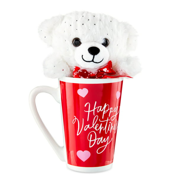 Show your loved one how much you love them this Valentines Day! Valentines Day Plush Toy in Latte Mug, Bear. This Valentines Day gift set features a removeable plush toy in a latte mug. Our little plush toy is an adorable dragon that is made of an oh so soft fabric and ready to wish you a Happy Valentines Day. Our little plush toy comes in a latte mug made of ceramic stoneware that is microwave and dishwasher safe. This mug features Happy Valentines Day in a whimsical script to convey that message of love to that someone special. Our Way to Celebrate! Valentines Day Plush Toy In Latte Mug, Bear will make the perfect gift to share that favorite coffee with our loved one served with love this Valentines Day.