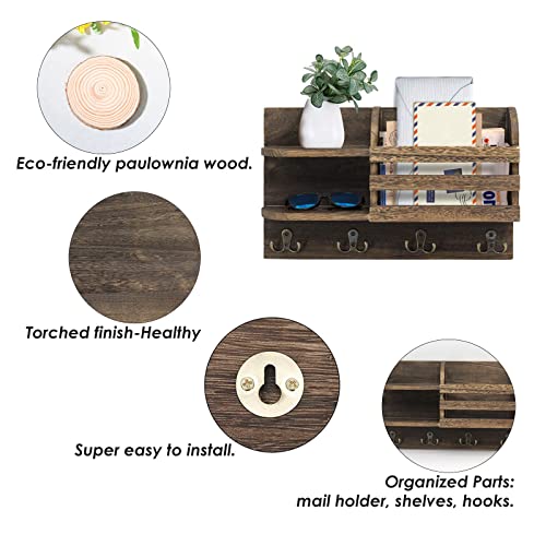 - 【High Quality Solid Wood Wall Mail Organizer】 Taking the points of health and eco-friendliness into consideration, our entryway organizer with key hooks and mail holder is made of painted paulownia wood. The rustic black color makes a great decoration to your home and office.