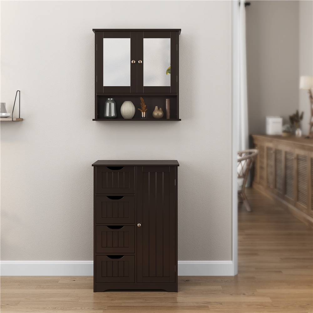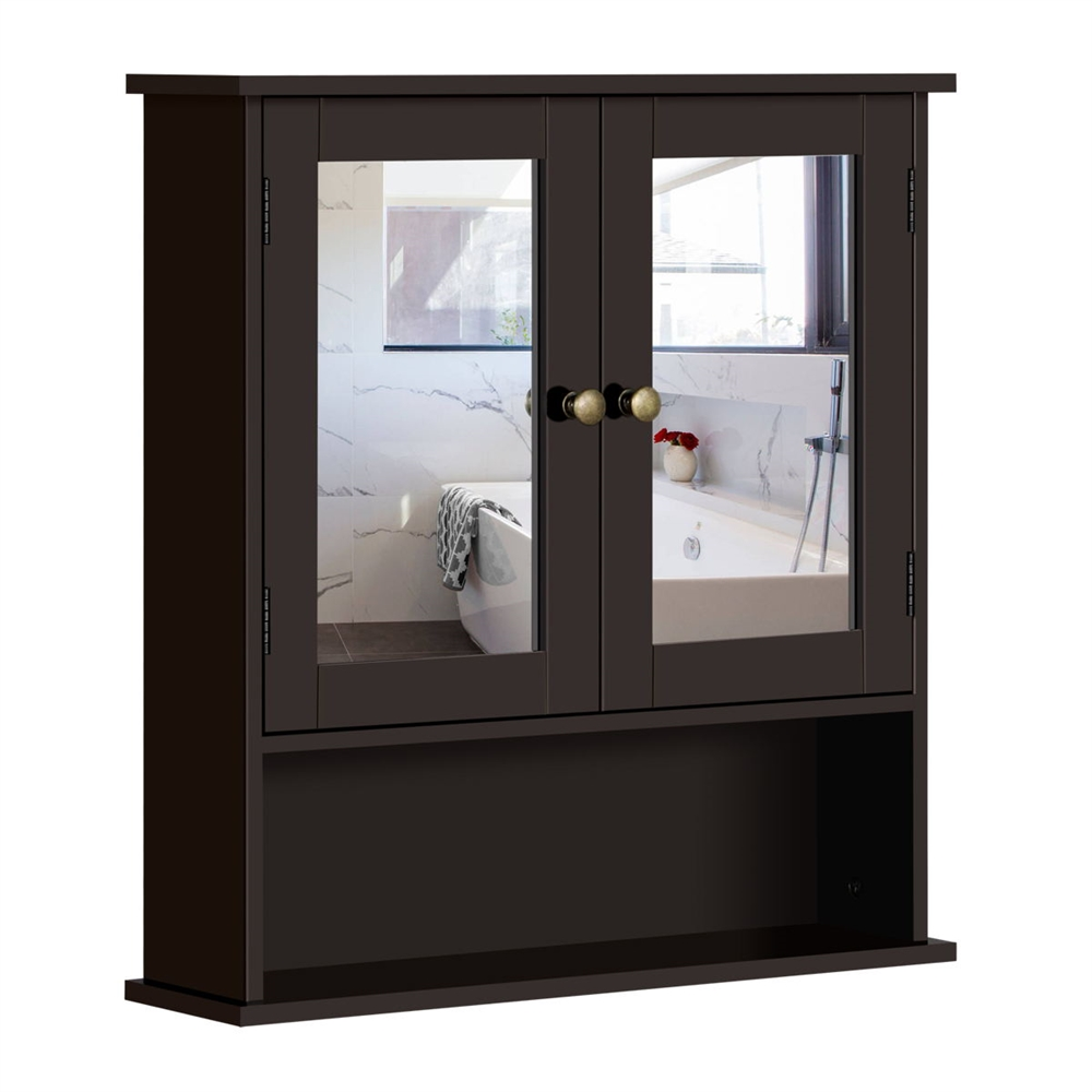 Wall-Mounted Mirrored Storage Bathroom Cabinet, Espresso