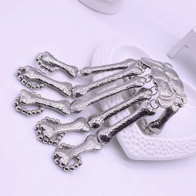 Product Description: Material: Alloy Length: 11cm / 4.33" Color: Silver Package Include: 1 x Skeleton Finger Bracelet *- Unique skull hand design with bone linked rings. *- This beautiful Bracelet is fashionable and stunning. *- Wearing this kind of bracelet will make you more eye-catching. *- A wild expression and symbol of masculinity. *- Suitable for Pageant, Party, Event, Christmas, Club, etc. It can be as a Best Gift for Friends, Girlfriend or Any Lovely Lady in Your Life.