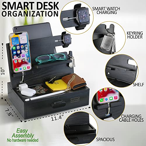 Wood Phone Docking Station for Men & Women w/ Drawer