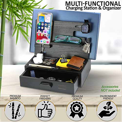 - Drawer Included: Our wood phone docking station has a pull out drawer which can help you store extra desktop accessories; Great gift for your husband, dear dad, for your men who you value; This is also fit for women to place on dressing table to store some makeup items or perfume, jewelry.