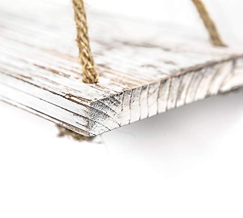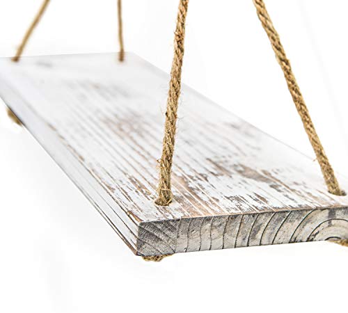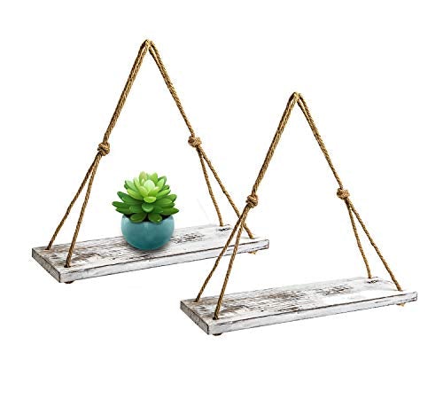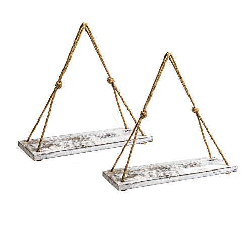 - [Easily Mounted]:These rustic wood hanging shelves with rope are easy to hang. Just hang from a nail, screw or hook. It has no special requirement in installing so it could be placed anywhere as there is a little bit room. Strung by twisted jute rope, it looks antique and sturdy. Really a good decoration for those who love decorating house with artistic items