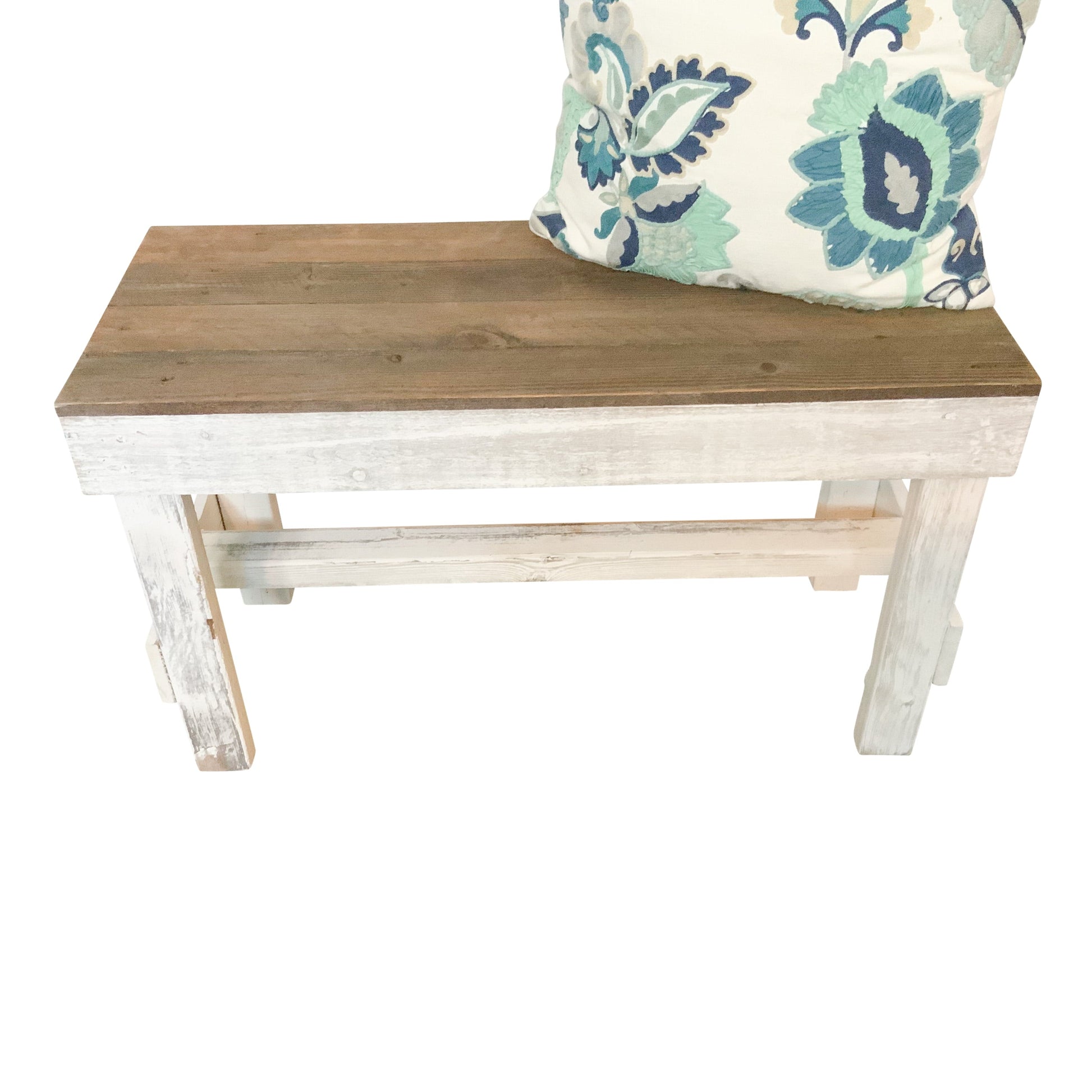 Add casual seating to your entryway, hallway, dining area, or kitchen with the Woven Paths Wood Bench. This sturdy bench has a gorgeous, reclaimed finish that complements a variety of home decor and adds rustic style to any room. Available in multiple finishes, you’re sure to find the perfect one to accent your home. Add a bit of rustic charm to your entryway or kitchen with the Woven Paths Wood Bench. The Woven Paths collection blends rustic farmhouse style with bohemian accents perfect for any season. This collection makes it easy and affordable to brighten up any room with cozy, vibrant, quality pieces. Woven Paths Wood Bench, Natural & White: *- Real wood construction *- Environmentally friendly *- Rustic appeal *- Dimensions: 36" L x 19.5" W x 14" H *- Compact design makes it ideal for smaller spaces *- Your choice of available finish