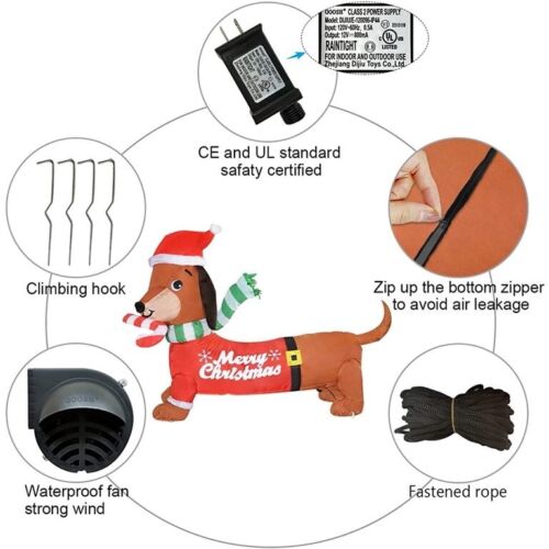 - đăCUTE Appearance DesignăGOOSH Christmas inflatable Dachshund dog come with LED lights built inside. This Dachshund dog make peopleâs love at first sight. Beside Christmas, it can be used as any other holiday decoration. Installed in the courtyard to enjoy Holiday with your family and spreading a happiness atmosphere to your neighborhoods.
